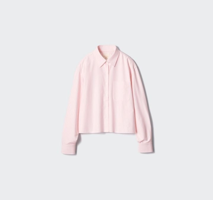 こちらのボックスシルエットのシャツは、軽やかな着心地が魅力!さらに衿つきできちんと感も押さえられるのでオススメです。スカートにもパンツにも合わせやすいショート丈なので着回し力も抜群。ストライプ柄はやさしい色合いの全3色。他に無地の白とブルーの2色もあり、さわやかな雰囲気で着こなせますよ!