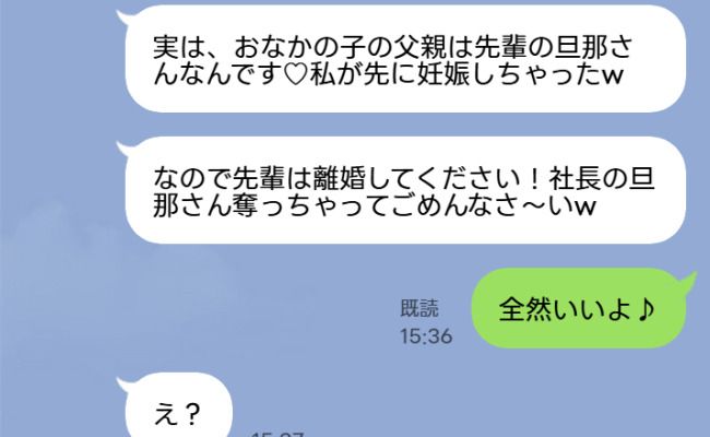 3. 「おなかの子の父親は先輩の旦那さんです♡離婚してくださいね」と職場の後輩から略奪宣言。私「いいよ!」真実を知った女の末路は