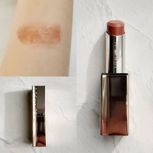 隠ぺい感のない色材と透明度と輝度の高いオイルを使っているので、透明感がありながらも美しい発色で、肌をくすませずヘルシーでうるおいのある唇に仕上がるのが魅力。中でも上写真の“02 アンバーグロウ”はメイクを選ばずに血色感を足してくれるので、チークをしない日にもおすすめです。