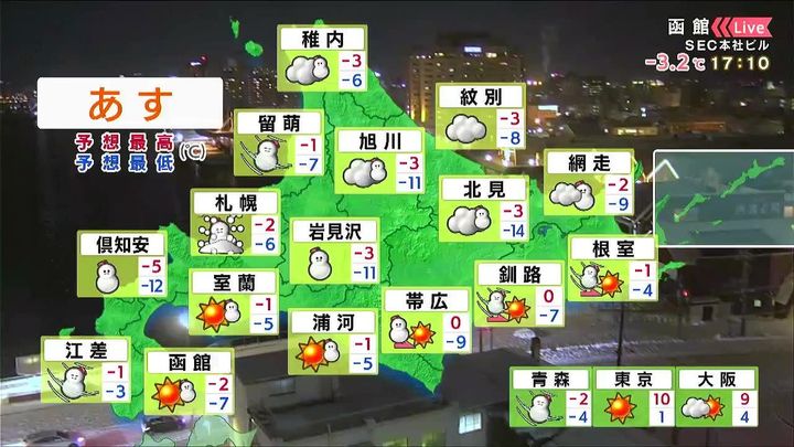 北海道のあす1月17日(金)の天気と、週間予報を、HBCウェザーセンターの児玉晃(こだま・あきら)気象予報士がお伝えします。