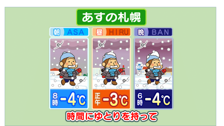 HBCテレビ「今日ドキッ!」の番組内でも独特(?)なイラストを使って天気をお伝えしています。