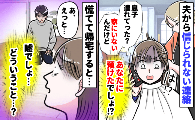 3. 2歳の息子を夫に預けて美容院へ「息子連れてった?いないんだけど」は?なんで!?慌てて帰宅すると