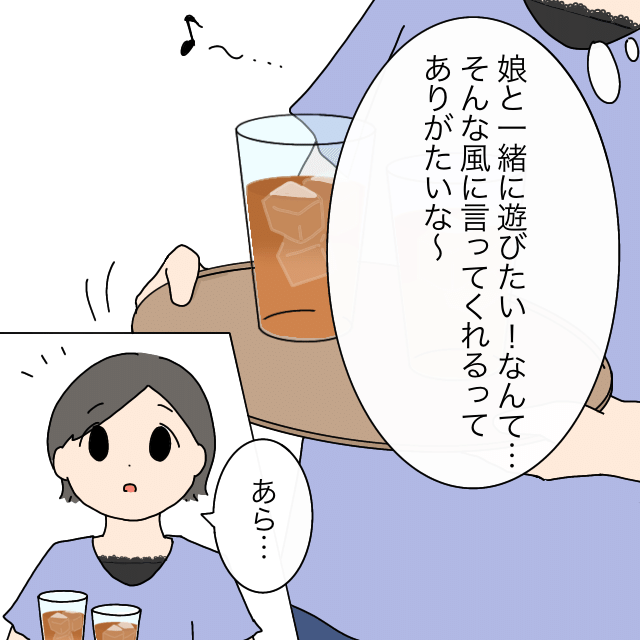 「娘と一緒に遊びたい!なんて・・そんな風に言ってくれるってありがたいな~」そんな風に思いながら、ママは飲み物を部屋に運んで行ったのでした。