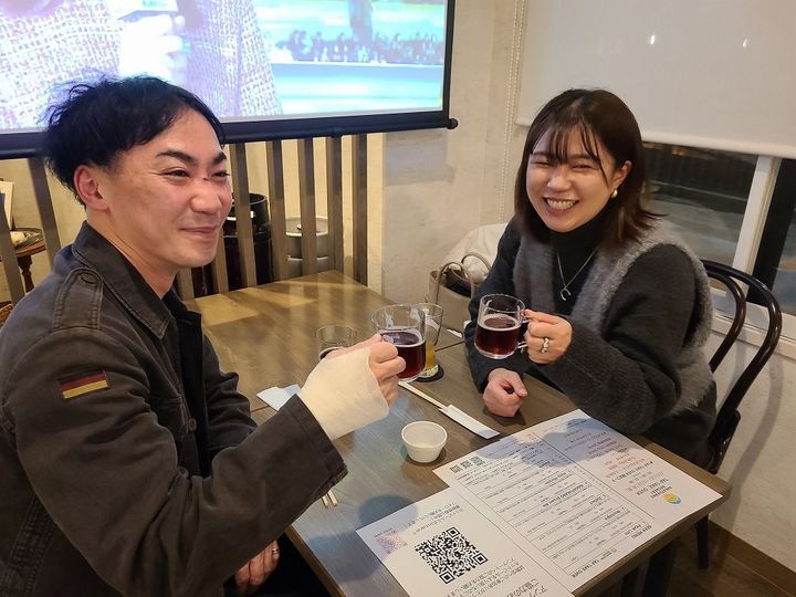 まずお話をうかがったのは、「クラフトビール大好きコンビ」の山下さん(向かって右)と、新保さん(左)。おいしいクラフトビールを求め、よく一緒に飲み歩いているそうです。