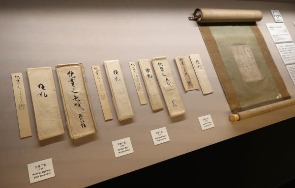 企画展「古筆切―わかちあう名筆の美―」コラム「極札」 展示風景 根津美術館蔵