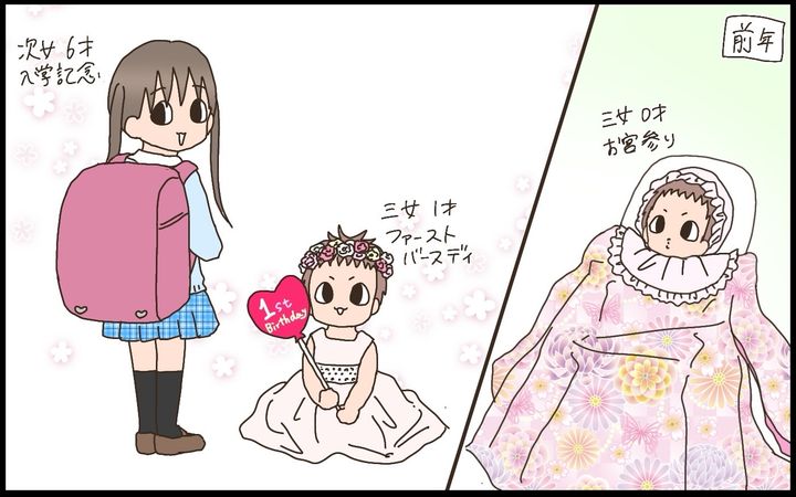 まず次女が産まれた年には、次女のお宮参りと長女の入園。