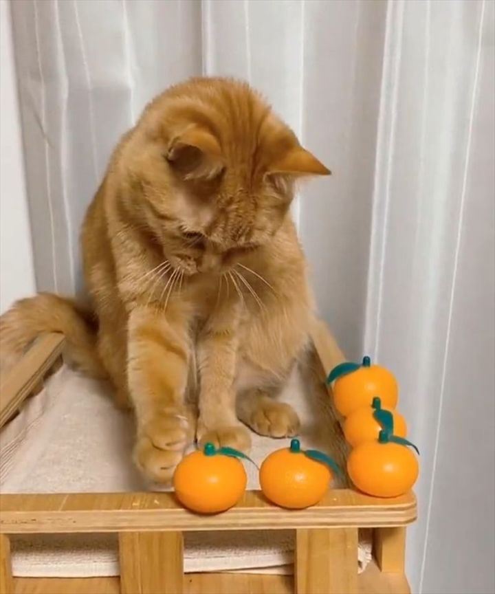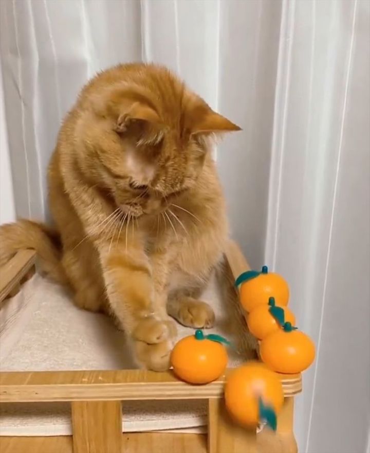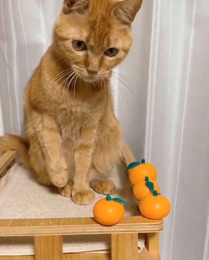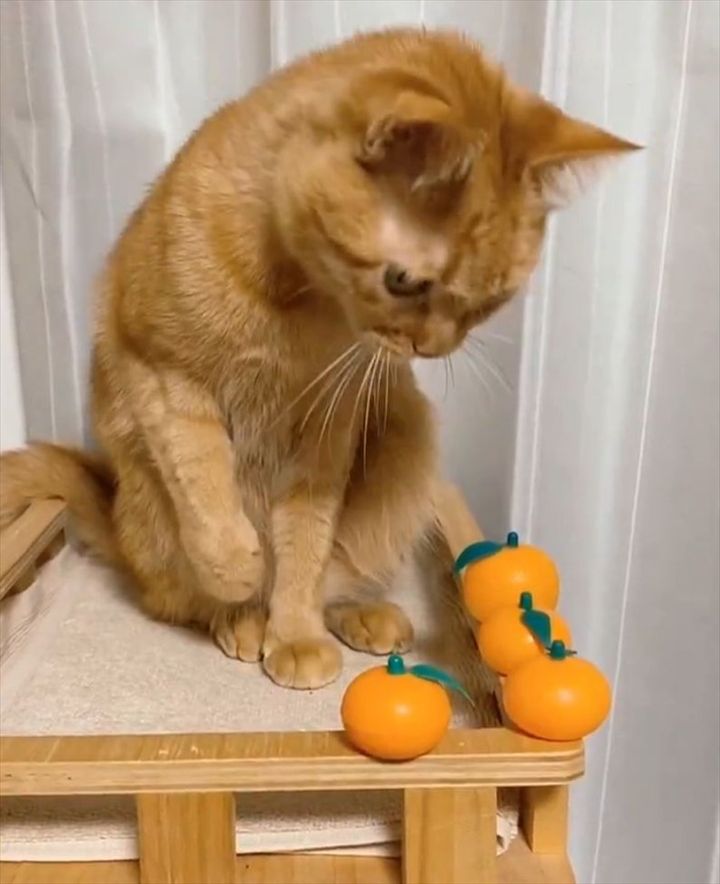 みかんのオモチャで遊んでいたつぶちゃん。 その様子は、こちらの投稿内の動画からご覧いただけます。