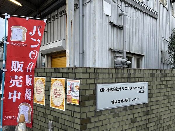 場所は宮野木ジャンクション近くの千葉市花見川区犢橋町。関西圏でシェアNo.1の「オリエンタルベーカリー」は業務用のパンメーカーです。 千葉工場は2年前から稼働しているそうです。規格外や在庫過剰になったパンをお買い価格で購入できるロッカー販売機の営業を昨年から開始しました。