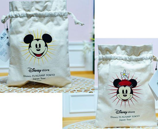 巾着入りクッキーは、ミッキーマウスの横顔クッキーが10個入っています。(1,500円) 巾着デザインは1種類で、下記画像のようにミッキーの反対側がミニーのプリントになっています。