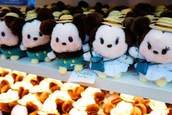旅がテーマなので、おそろいの帽子をかぶったミッキー&ミニーのうるぽちゃちゃん。ミッキーは背中にリュックをミニーはポシェットを身につけています。とってもキュート!旅のお供にしたくなります。(各 1,800円)