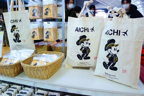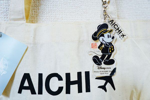 ご当地、愛知限定アイテムは、AICHIのロゴ入りトートバッグ(950円)とキーチェーン(1,500円)です。 愛知を訪れた記念として、お土産としておすすめ。
