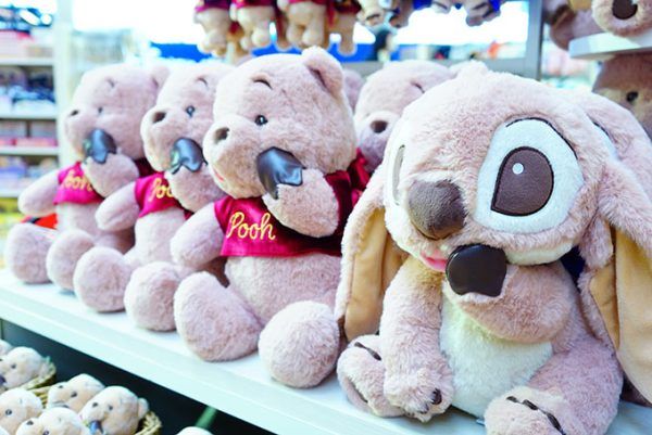 バレンタインが近いので、チョコレートをイメージしたプーさんとスティッチのぬいぐるみ(各4,400円)。いつものイメ-ジとちがった雰囲気で可愛いらしい!ぬいぐるみキーチェーン(各2,600円)もあります。