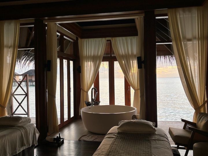 リゾート滞在の醍醐味といえば、アクティビティの数々。なかでもスパでリラックスする時間は欠かせませんよね。「ナラドゥ・プライベート・アイランド」から出たくない……!という人は、ヴィラ内でマッサージを受けることもできますが、今回は、姉妹リゾート「アナンタラ・ディグ・モルディブ・リゾート」にある「Anantara Spa」を利用することに。「Anantara Spa」は6つの水上トリートメントルームを有し、よりモルディブらしい雰囲気を味わえます。