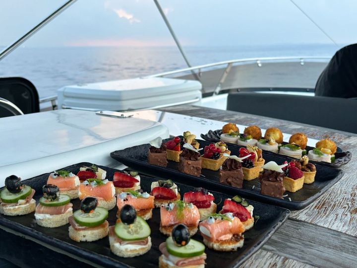 料金:$2500(4名までの料金。最大6名まで、1名につき$250で追加乗船可能。カナッペと飲み物を含む。飲み物は、プレミアムワイン、スピリッツ、ビール、ソフトドリンク、冷たいフルーツジュースなどからお好みの飲み物を選べます)