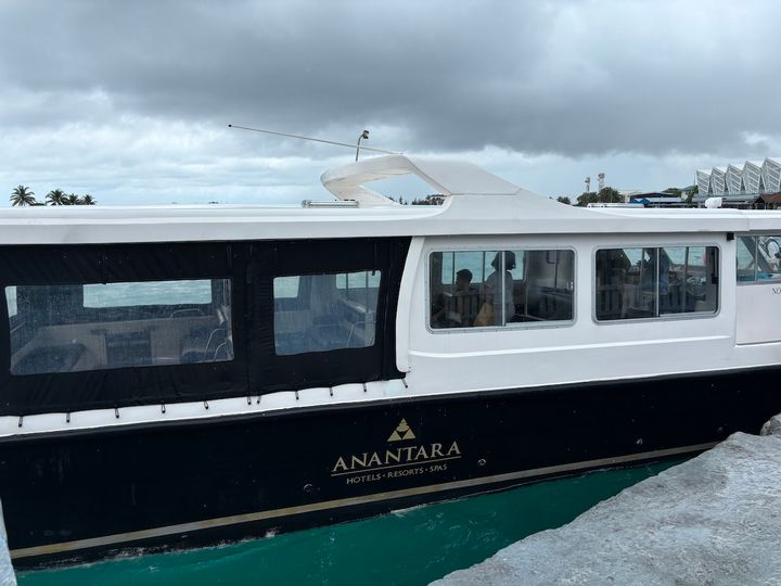 ひと休みしたら、ボート乗り場へ。ここから30分ほどスピードボートに乗って宿泊先の「ナラドゥ・プライベート・アイランド」へ向かいます。「ナラドゥ・プライベート・アイランド」に到着したら、スタッフが歓迎してくれました。
