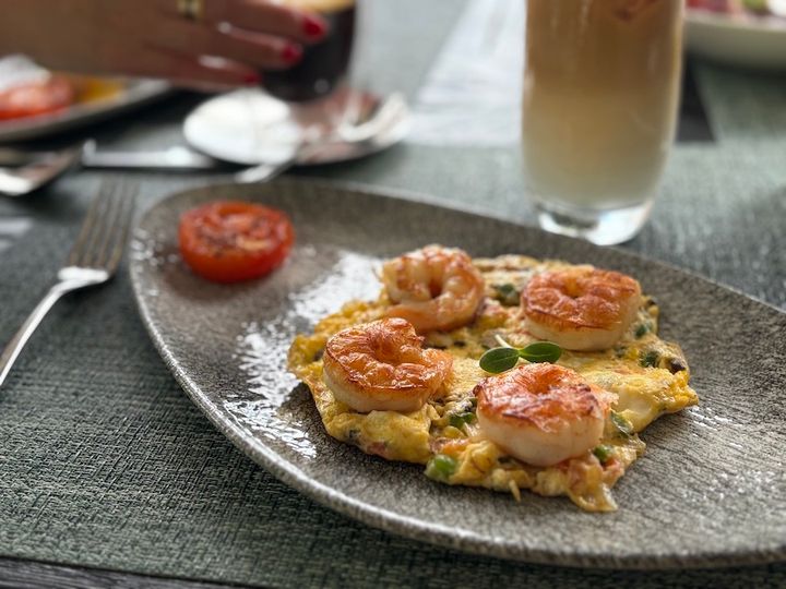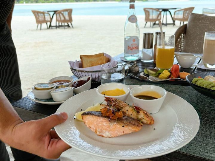 決まったメニューから選びたい人は、朝食メニューも用意されているので安心を。洋食や中華、モルディビアンなど、セットだけでなくアラカルトもあります。次の日はメニューにあるオムレツをオーダーしましたが、使用する具材や付け合わせなど、好みを聞いてアレンジしてくれました♪