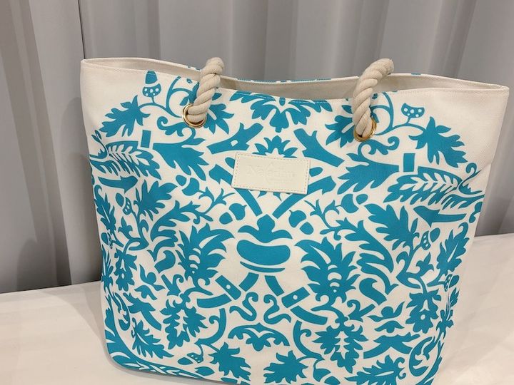 また宿泊ゲストがお土産として持ち帰れるのが、写真のトートバッグとビーチサンダル、ハット。いずれも「ナラドゥ・プライベート・アイランド」オリジナルアイテム。トートバッグは鮮やかなブルーのプリントがかわいい。ビーチサンダルやカメラ、飲み物に着替えなど、たくさん入れても余裕があるサイズです。