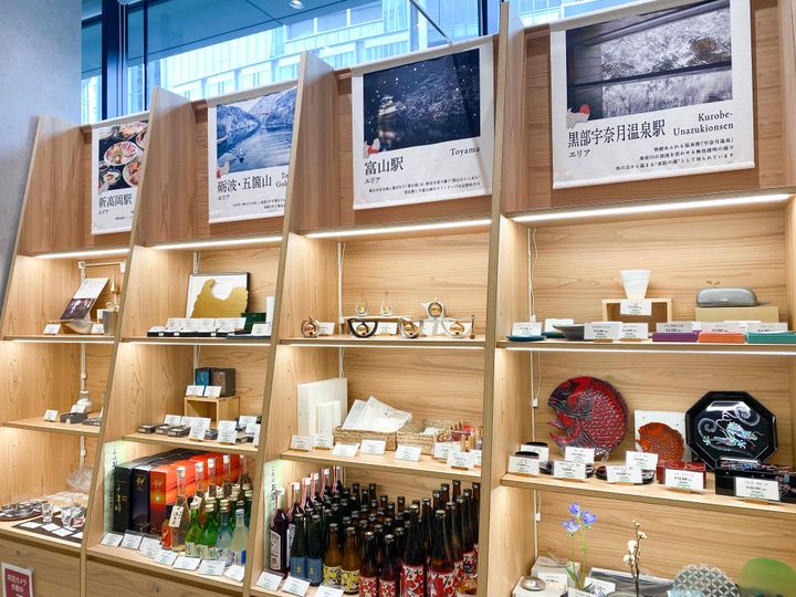 富山県コーナーでは、「新高岡駅」エリアを代表するブランドとして高岡市の鋳物企業「能作(のうさく)」の箸置きなどが、「富山駅」エリアを代表するブランドとして富山県砺波市「立山酒造株式会社」の日本酒などがピックアップされていました!