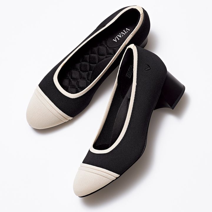 チャンキーヒールで安定性があり、ソールは独自のパターンで高い摩擦を起こし、滑りにくく、より歩きやすい作り。パンプス[H4.5㎝]¥20,900(VIVAIA)