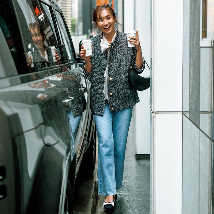 足裏の力を上手く分散させ、かかとの衝撃を吸収するインソールがアップデートされた最新のデザイン。パンプス[H4.5㎝]¥20,900(VIVAIA)ジャケット¥52,800(エリオポール/エリオポール代官山)ブラウス¥20,900(ドレステリア/ドレステリア 渋谷スクランブルスクエア店)デニムパンツ¥9,900(Mila Owen/Mila Owen ルミネ新宿2店)バッグ¥99,000(J&M デヴィッドソン/J&M デヴィッドソン カスタマーセンター)ピアス¥86,900リング[薬指]¥165,000(ともにマリハ)リング[人差し指]¥46,200(Pearl for Life/ロードス)