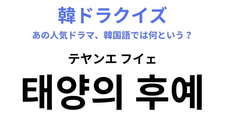 「태양(テヤン)」=「太陽」、「의(エ)」=「の」 、「후예(フイェ)」=「末裔」を組みあわせると、「태양의 후예(テヤンエ フイェ)」となります。
