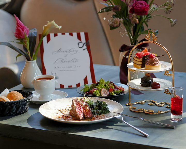 ザ ストリングス 表参道の2階レストラン「タバーン・バイ ザ グリーン」では1月15日からアフタヌーンティーの新メニューが登場!艶めく濃厚なショコラと旬の真っ赤ないちごが彩る華やかなアフタヌーンティーで、優雅なひとときを。