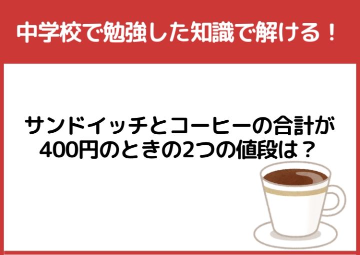中学校で勉強した知識で解ける!「サンドイッチとコーヒーの合計が400円のときの2つの値段」は?