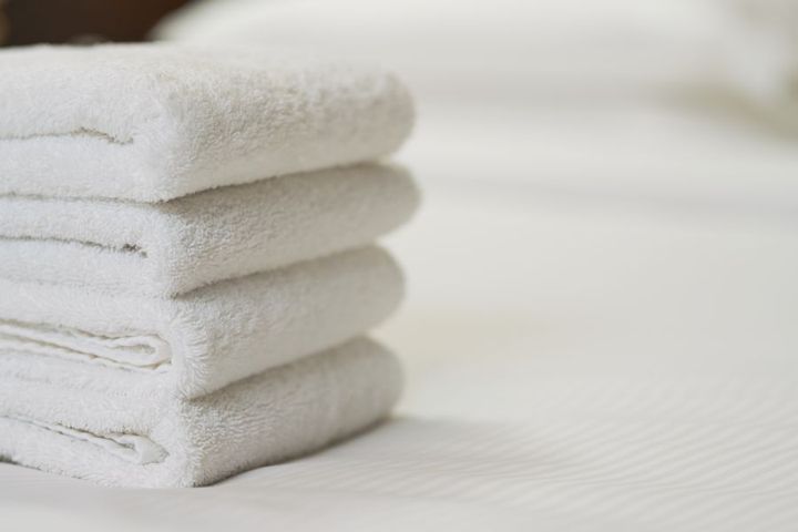 すすぎ完了後やさしくしぼったら、バスタオルで包んで水分をとりのぞく。「しぼるときはあくまでもやさしく。雑巾のように強くしぼってしまうと、ニットに大きなシワができてしまいます」(寺原さん)
