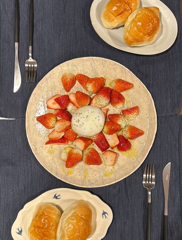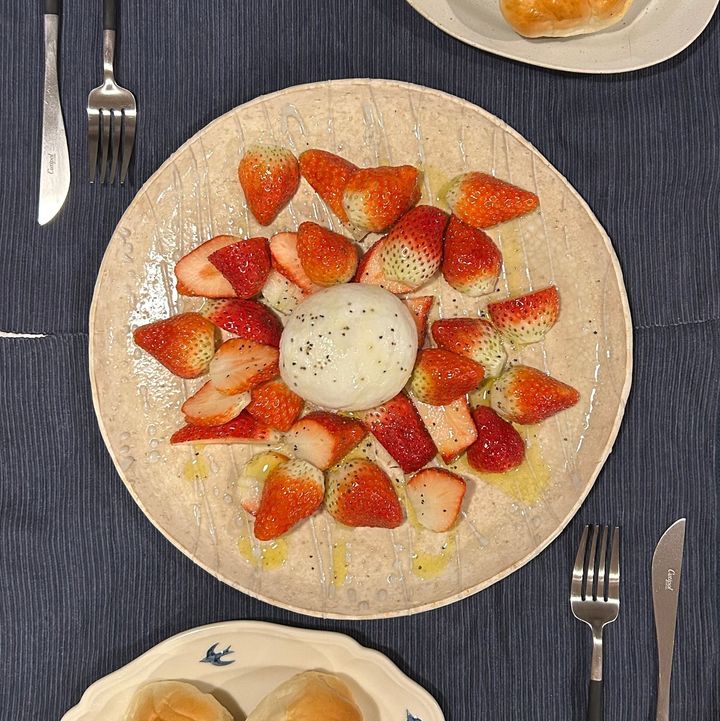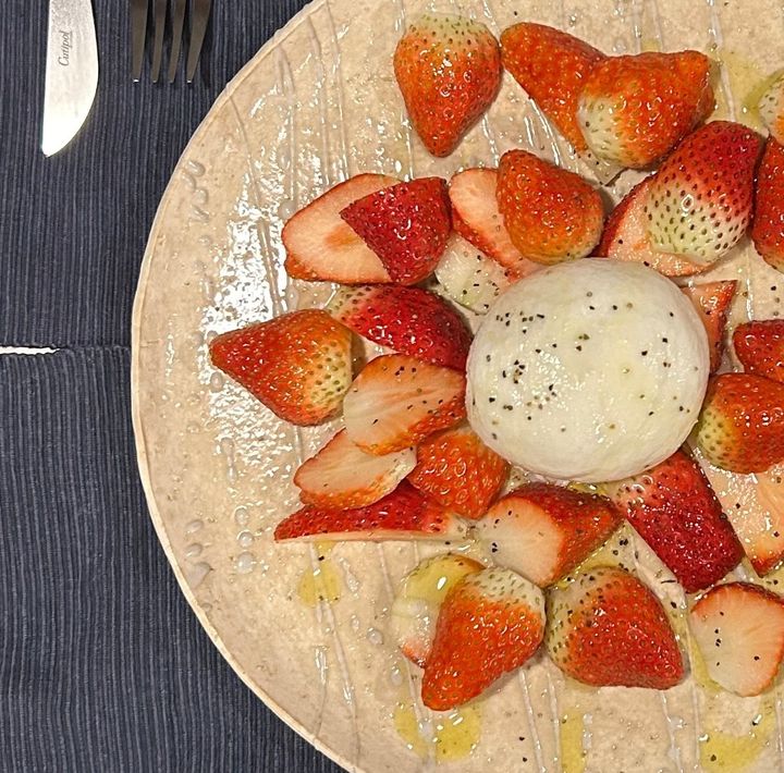 イチゴの甘さをブラータチーズの濃厚さが包んで引き立てます!