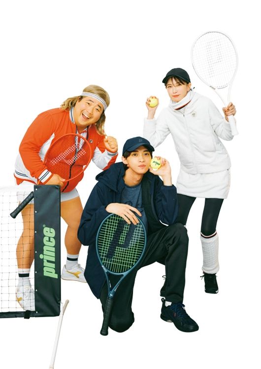 (別府さん)ジャケット¥19,800、パンツ¥12,100、Tシャツ¥7,150、キャップ¥4,950、シューズ¥16,170、ラケット¥42,900/以上プリンス(グローブライド)