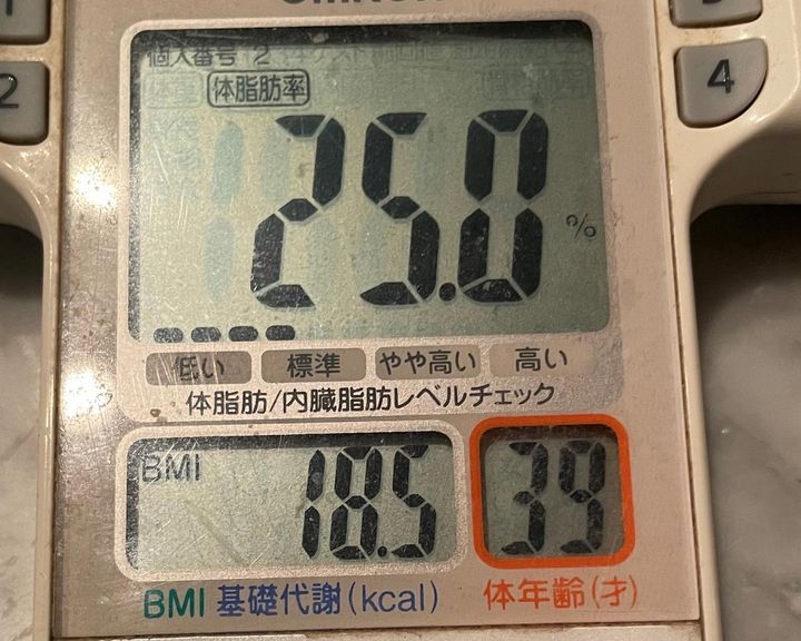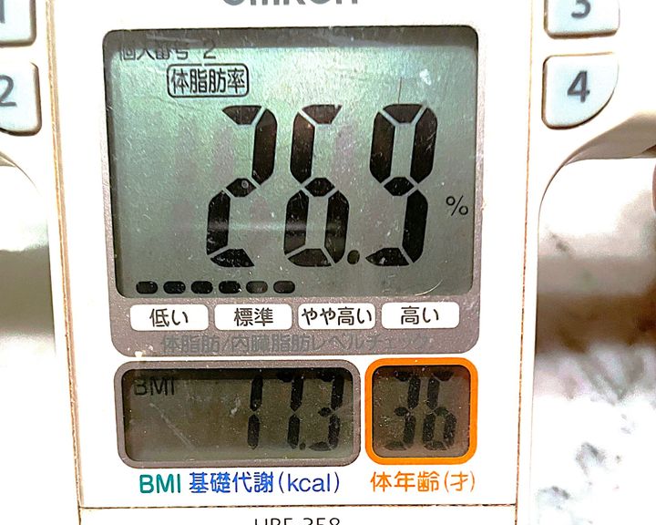 1週間の結果は… ・体脂肪率 → +1.9% ・体重 → -3kg