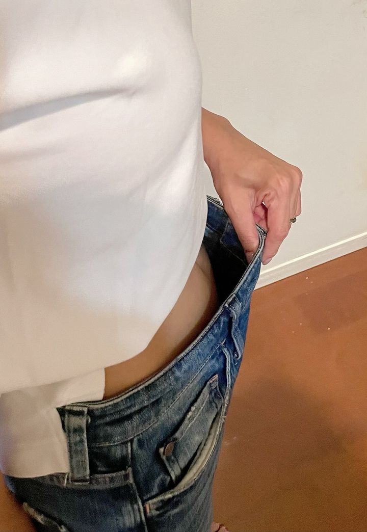 1年前に娘の受験の願掛けでお酒や炭水化物などの好物を断ったことで、一時的に体重が減少したものの、その後は反動でリバウンド傾向に。仕事や家事を終えた夜に韓ドラを見るのがストレス解消で、食べたり飲んだりしているシーンが多く、つられてしまい、ほぼ毎日顔も体も浮腫んでいる状態に。やるならストイックにやりたい性格上、一番ハードルの高いファスティングにトライ。結果は、デニムが緩くなるほどお腹はぺったんこに!