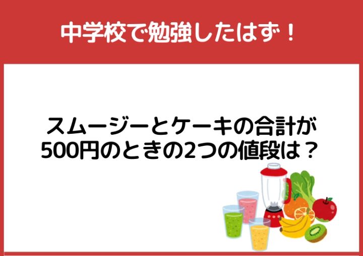 中学校で勉強したはず!「スムージーとケーキの合計が500円のときの2つの値段」は?