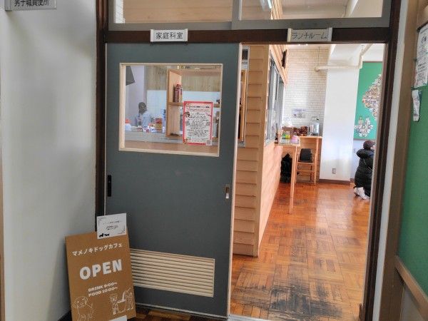 そして右手奥に進むと「家庭科室」と書かれたプレートのところに「マメノキドッグカフェ」がありました!!