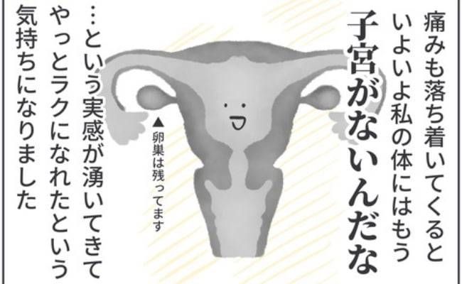 痛みが落ち着いてくると、いよいよ私の体にはもう子宮がないんだなという実感が湧いてきて、やっとラクになれたという気持ちになれました。