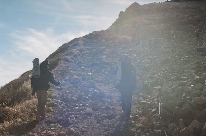 登りの所用時間はおおよそ2〜3時間程度。11月のこの時期は3シーズン用の登山靴・長ズボン、上は半袖の上に薄いフリースを着て風が強い時や肌寒い時には風の防げるアウターを着ていました。山を登る時は万全の準備で向かいましょう!