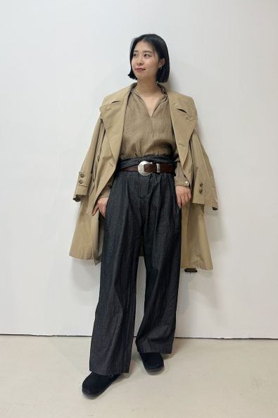 「暖冬だからこそ、外側は軽く見える装いで。全体のサイズ感を少しオーバーめにすることでインナー等を仕込むことができるので、軽やかに見えても温かく着こなすことができます」