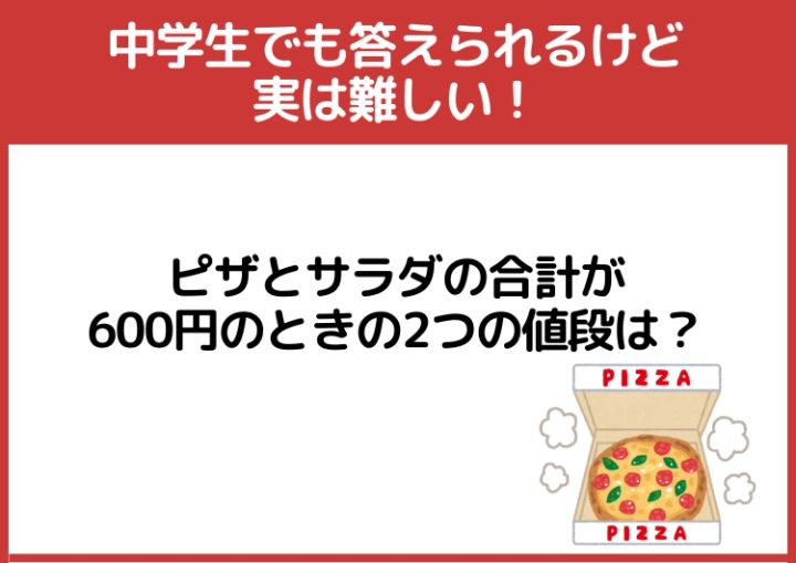 中学生でも答えられるけど実は難しい!「ピザとサラダの合計が600円のときの2つの値段」は?