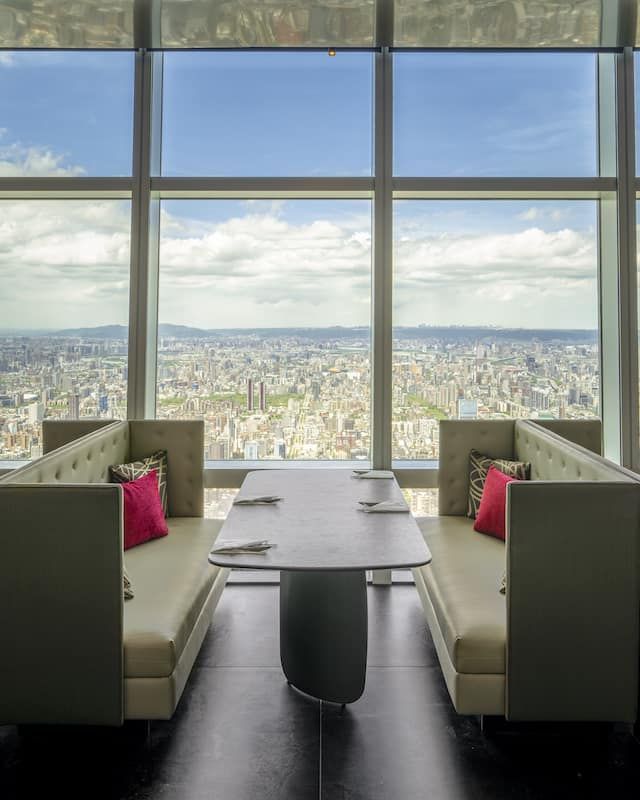 席により街並みや山々など景色が異なり、夕日、夜景も美しいので、ランチでもディナーでもそれぞれの時間帯であらゆる台北の表情を楽しめます。