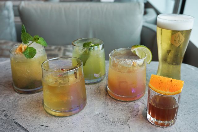 フルーティーなカクテルが好きな人は、爽やかな「「日光莫希多(パイナップル×マーガオ)(左から1番目)」か「碧綠之根(台湾バジル×グァバ×梅パウダー)(左から3番目)」がおすすめ。