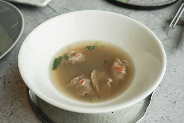 澄んだスープには高級食材が。魚の浮き袋や鮑も入っていました。たくさんの食材から出た複雑な出汁によって深みのある味わいなのに、美しくまとまっていて、すっきり端正でもあります。