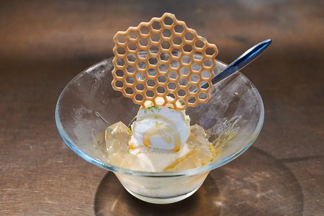 ジェラート専門店「Double V」とコラボレーションした「蜂蜜檸檬愛玉」は酸っぱくて爽やかな蜂蜜レモンスイーツ。食事のいちばん最後にスッキリ整えてくれそうな清涼感です。
