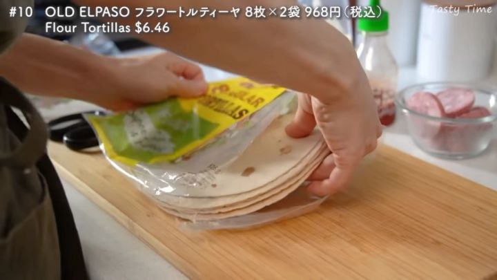 開封直後はトルティーヤ同士が貼りついていますが、電子レンジで30秒温めると簡単にはがせるそう。