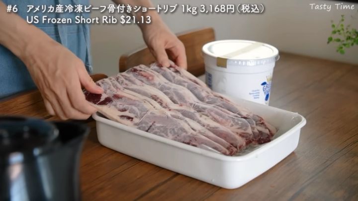 冷凍状態で販売されている、アメリカ産のビーフ骨付きショートリブ。