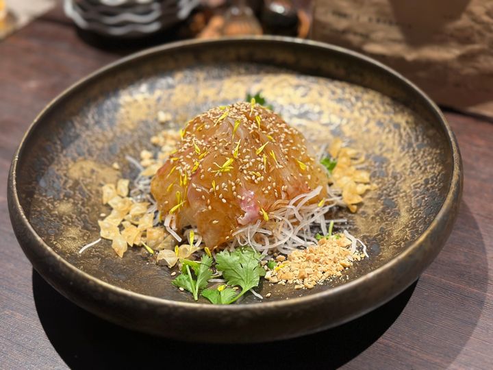 今まで食べたことない味で中華仕立ての鯛のサラダ。