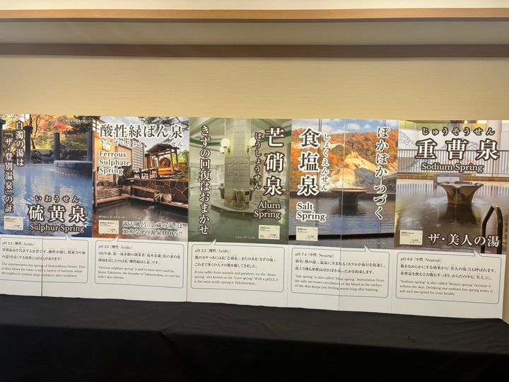 第一滝本館では、日本の10種類の泉質のうち半分の5つの泉質が楽しめます。