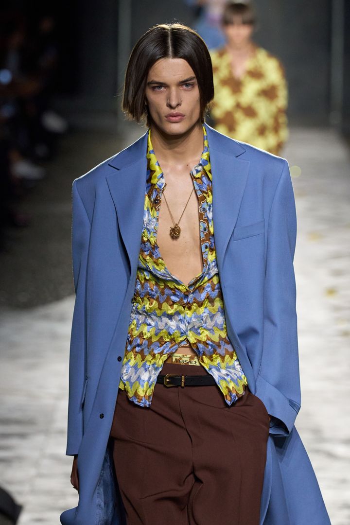 「ヴェルサーチェ」のコレクションは1990年代後半のムードを取り入れており、ヘアスタイルも当時のトレンドを反映。