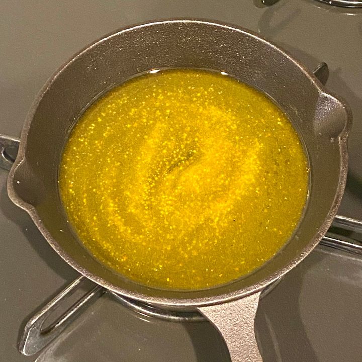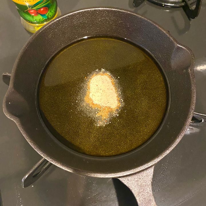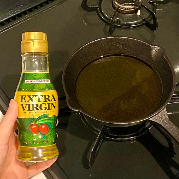 出典:MORE①スキレットにオリーブオイルを入れる。
