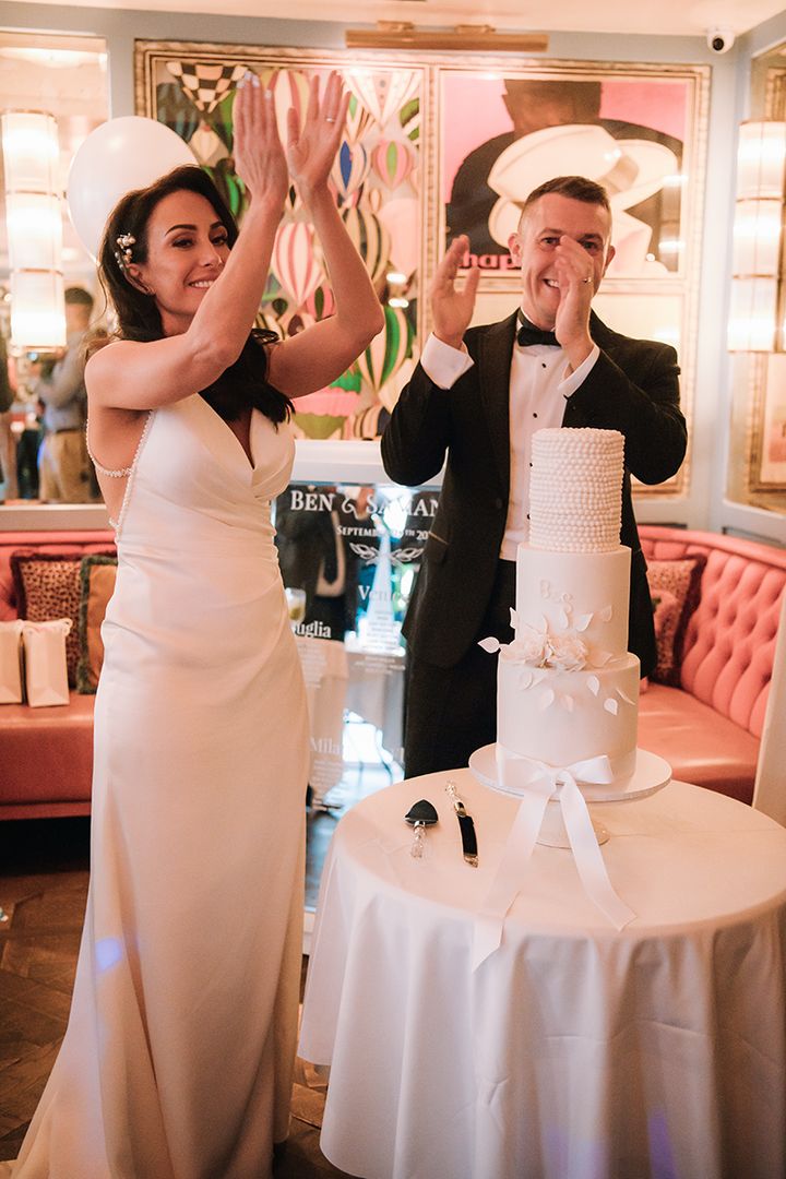 水辺の結婚式が終わった後は、家族でローマン・バースのザ・パンプ・ルーム・レストランでウエディング・ブレックファーストをとりました。お祝いを続けるため、今度はバースにあるジ・アイヴィー・ブラッスリーに移って披露宴。そこで少人数の友人たちも加わり、朝の11時から夜の11時まで、マジシャンやサクソフォーン奏者、DJを交えてパーティをしました。最後はレストランの外で一杯お酒を飲んでしめくくりました。