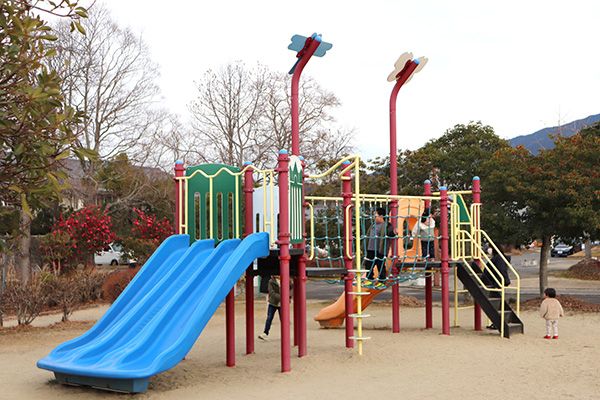 伊予鉄松山市駅からであれば車で30分ほど。河野別府公園は松山市北部の北条地域にあります。 敷地内には遊具広場の他にも、グラウンド2つとテニスコート1つがある、大きな公園です。 公園の隣には、北条図書館や北条児童センターもあるので、子供とのお出かけにはとってもおすすめのスポットでしたよ。